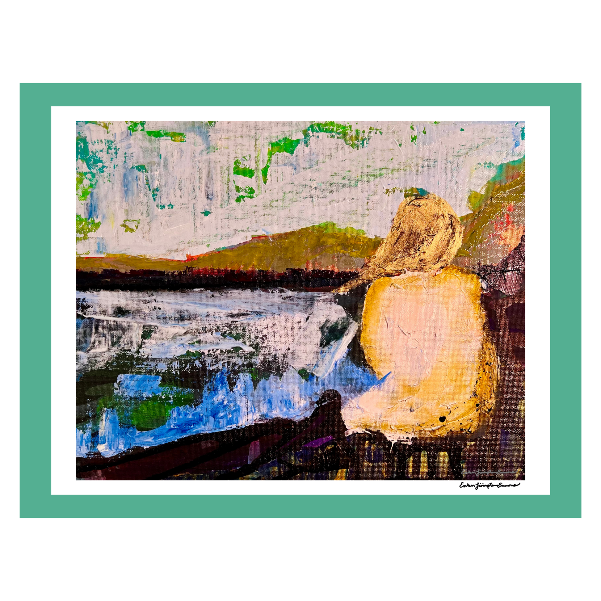 Contemplative and windswept, See captures the quiet moment of a woman gazing out at the sea, framed by moody skies and a rugged coastline. This expressive oil painting was created in Sitka and invites viewers to pause, reflect, and connect with the rhythm of the ocean and their own inner world.