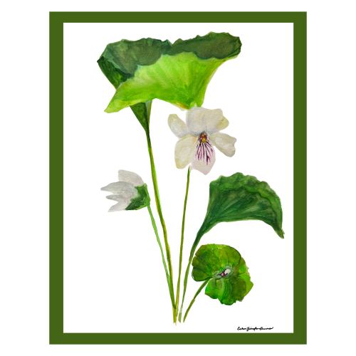 Delicate and wild, Viola renifolia is a celebration of one of Alaska’s understated woodland treasures. Known commonly as white violet, this native plant’s soft white petals and rounded, kidney-shaped leaves are carefully rendered in luminous color and form. This botanical portrait invites quiet reflection on the small but powerful beauty that thrives on the forest floor.